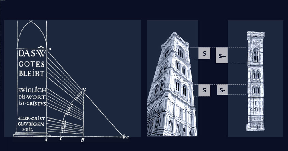 Architecture History is rich with examples of formal adjustment in aid of visual correction. The strict geometry of the page adjusts to mitigate perceptual distortions in reality